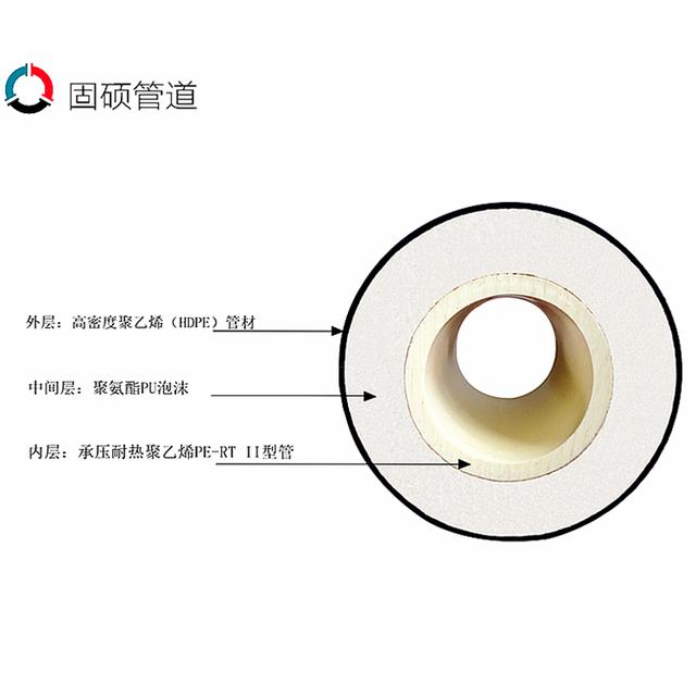 PE-RT II型预制直埋保温管又称“PE-RT II保温复合塑料管”,是由高密度聚乙烯外保护层、聚氨酯硬质泡沫塑管和耐热聚乙烯(PE-RT II)管材组成。PE-RT II预制直埋保温管具有优良的性能被用于城镇集中供热二次管网管道系统,其外保护层、保温层、工作管三部分,外保护层材料为高密度聚乙烯;保温层采用硬质聚氨酯泡沫塑料;PE-RT II工作管采用II型耐热聚乙烯(PE-RT II)用管道原料耐低、高温达-40至110°C
