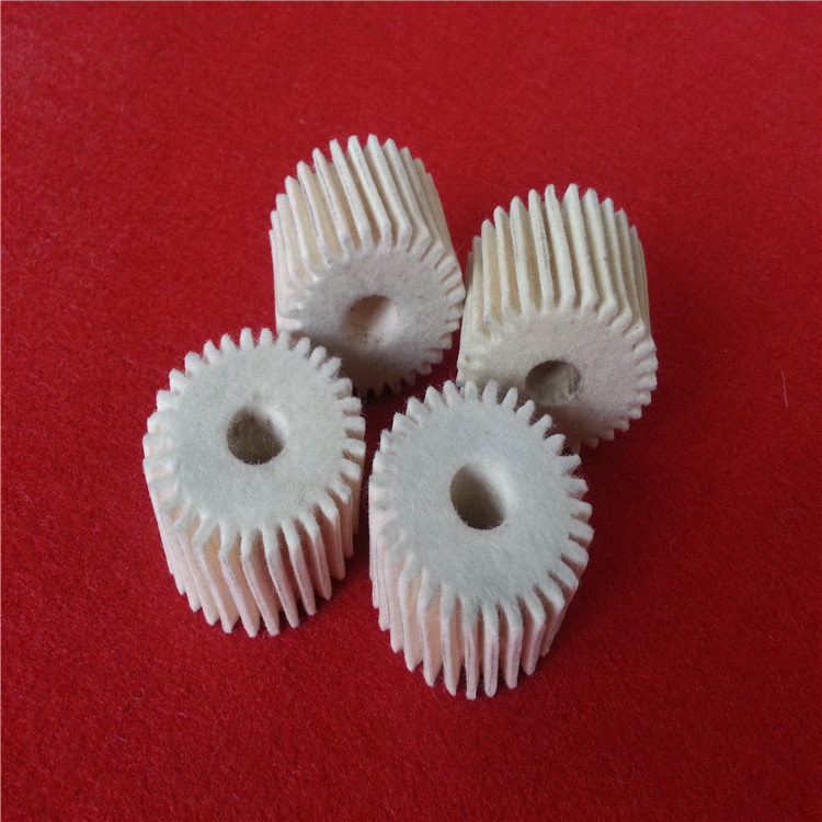 羊毛毡齿轮材料选用进口羊毛生产的羊毛毡,密度大,洁白、无杂质,主要用于密闭型的齿轮箱润滑齿轮,使齿轮始终处于润滑状态,延长使用寿命。